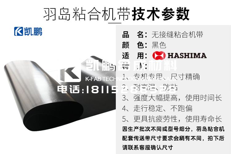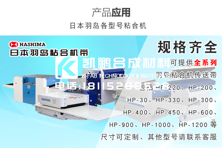日本羽島HASHIMA無接縫粘合機帶,可提供各種型號粘合機輸送帶,包括羽島HP-220K、羽島HP-200F、羽島HP-220F、羽島HP-30P、羽島HP-330K、羽島HP-300、羽島HP-400、羽島HP-400C、羽島HP-450、羽島HP-450C、羽島HP-450J、羽島HP-450JS、羽島HP-450F、羽島HP-450M、羽島HP-450MS、羽島HP-600、羽島HP-600A、羽島HP-600B、羽島HP-60LE、羽島HP-60LS、羽島HP-600F/LFS、羽島HP-900、羽島HP-900LF/LFS、羽島HP-1000、羽島HP-1000LW、羽島HP-1000LS-I、羽島HP-1200、羽島HP-1200LS-I等型號的粘合機傳送帶輸送帶。